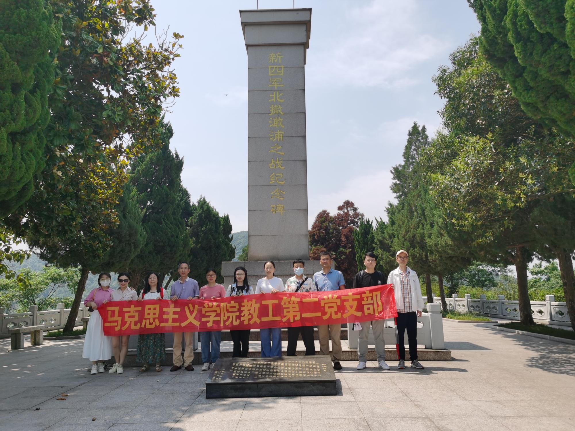 2023年6月10日,太阳集团tyc4633教工第二党支部组织前往嘉兴海盐,参观红色澉水初心教育馆、新四军海北支队驻地旧址、新四军北撤澉浦之战纪念碑,了解新四军北撤澉浦突围战,追寻革命先辈足迹,感受“红色”文化熏陶。