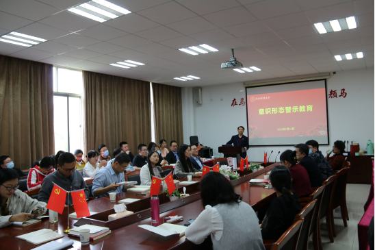 为进一步加强和改进意识形态工作,落实意识形态责任,牢牢掌握意识形态工作的领导权、管理权和话语权,全面贯彻落实党中央关于全面加强师德师风建设的各项决策部署,对照落实教育部等七部门《关于加强和改进新时代师德师风建设的意见》,强化教师纪律意识,规范从教行为,提升职业道德素养,4月19日下午,意识形态工作暨师德师风警示教育会议在3号楼211会议室召开,全体教职工参加会议。会议由公司党委书记、经理贺武华主持。