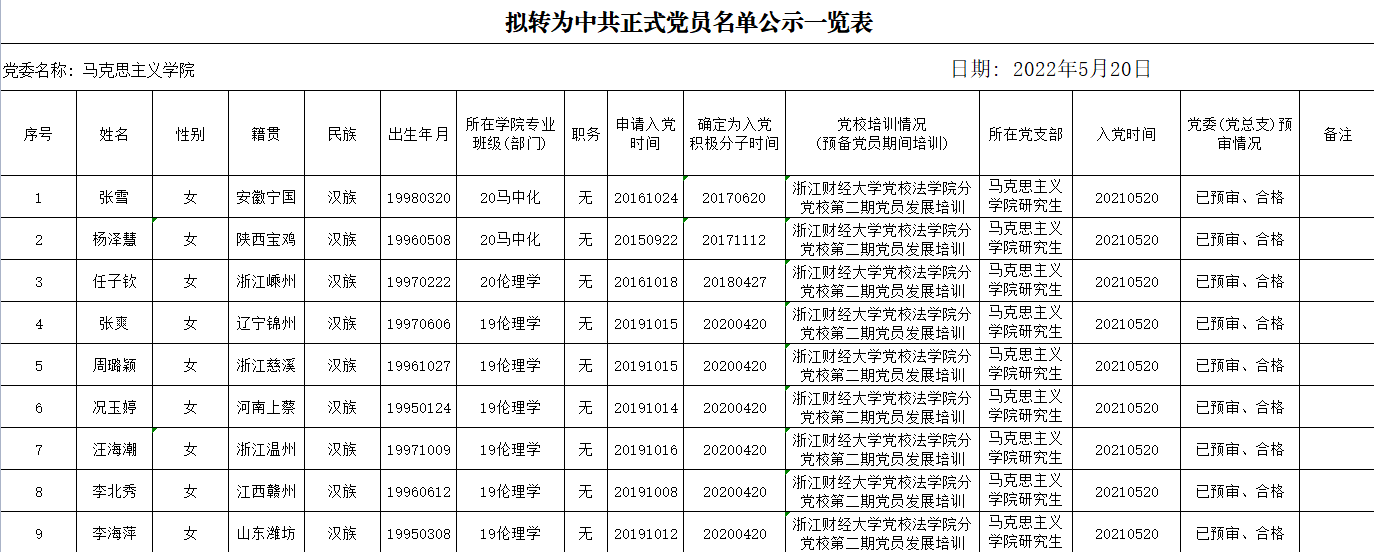 为了加强对发展党员工作的民主监督,保证转正党员的质量,现将拟转正中共正式党员有关情况公示如下,以便广泛听取意见。