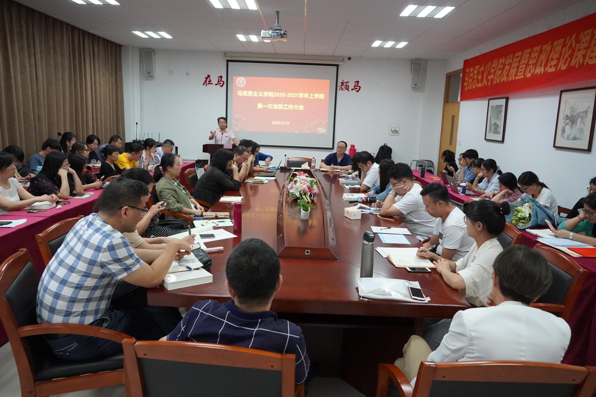 大会共分为7个流程。首先,各教研室分别就本学期教学工作展开讨论。会议第二个环节,公司6位教研室主任分别介绍各自教研室的工作思路和重点。马克思主义基本原理教研室主任韩跃民老师介绍本教研室在新学期的工作规划。在教学工作方面,马院教研室以教学改革为核心目标,教学内容不仅突出经典文献的品读,还要与浙江省发展实践相结合,同时设置习近平总书记关于浙江重要讲话的一系列资料;在日常工作方面,推动线上、线下相结合的集体备课会和青年教师的帮扶计划。中国近现代史纲要教研室主任高伟老师介绍了新学期纲要课教学计划的调整和教学大纲的修编,介绍了本教研室对青年教师的帮扶计划,同时还介绍了纲要教研室与其他兄弟教研室互帮互助护持的教学科研计划,努力促成教学、科研团队的形成。中国特色社会主义理论体系概论教研室主任潘旦老师从教学、科研、团建的角度分别介绍了本教研室新学期工作计划。在教学工作的规划中,要积极申报各类课程、积极开展集体备课、努力推进教改工作;在科研工作的规划中,要努力推进国家课题申报研讨会,积极举办论文指导交流活动;在团建工作的规划中,要积极参加省内调研活动等。思想道德修养与法律基础教研室主任王洪霞老师指出,在新学期工作中,思修教研室要加强教学规范化建设,更加注重教学大纲和考试细则,对每一个教学专题要有更为精准的安排,同时努力推进章节和教学主题相一致,加强教研室常规化交流。心理教研室主任李晓娟老师从本教研室成立的理念、宗旨等角度出发,指出心理教育与心理服务为本教研室的工作核心,同时推动心理咨询室的建立。另外,李晓娟老师还指出,还要积极推动心理教研室与公司员工处的合作,努力开展各项心理辅导、心理讲座,同时将此业务拓展到中小学,以及与治疗如自闭症、孤独症等慈善医疗机构合作,做一些公益性的工作。形势与政策教研室主任赵春珍老师从形策课的特殊性出发,指出新学期要大力抓好常规化教学,搞好两次集体备课,组织好两次示范课建设,狠抓员工考勤考核;还要全力做好本教研室科研、教改工作,多贡献教学新智慧,同步慕课资料;另外还要组织教研室成员共同撰写教研论文,多组织多开展教研室怡情怡心的教研活动。