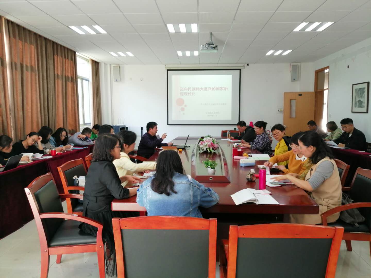 2019年11月5日下午,太阳集团tyc4633全体师生党生会聚一堂,公司党委书记华正学老师为大家上了一堂题为“迈向民族伟大复兴的国家治理现代化”的专题党课。