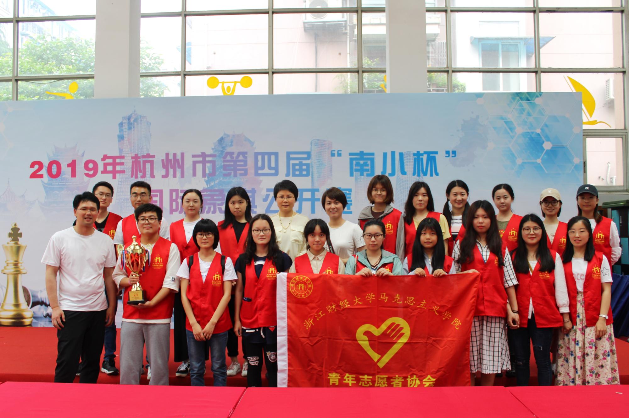 本次活动的主题是协助南肖埠小学举办杭州市第四节“南小杯”国际象棋公开赛的比赛秩序维护工作,保证赛程顺利有序的进行,保护员工安全与维护校园环境卫生是本次活动的主要目的。5月18日与19日上午6时40分,志愿者们在公司青协会长陈依苗同学的带领下,集结并一同前往南肖埠小学。服务活动职责由南肖埠小学老师分配,志愿者们服从安排并积极配合,带着满满的爱心在详细了解本次大赛的日程及场地状况后,悉心解答儿童与家长的询问、耐心指引儿童们自觉主动地收拾自己的垃圾并分类投放、努力维护休息场地的秩序和卫生、与该校老师通力合作共同制作并颁发等级证书、主动参与赛后卫生打扫工作和桌椅归位工作。本次志愿服务活动在5月19日下午14时圆满完成,临别之际,南肖埠小学的董事长对我们的劳动和付出表示感谢,对同学们的认真负责表达高度赞扬,最后,所有志愿者与南肖埠小学的老师们合影留念,同学们纷纷表示十分愿意参加更多像这样有意义的活动,本次活动也在一片欢声笑语中落下帷幕。