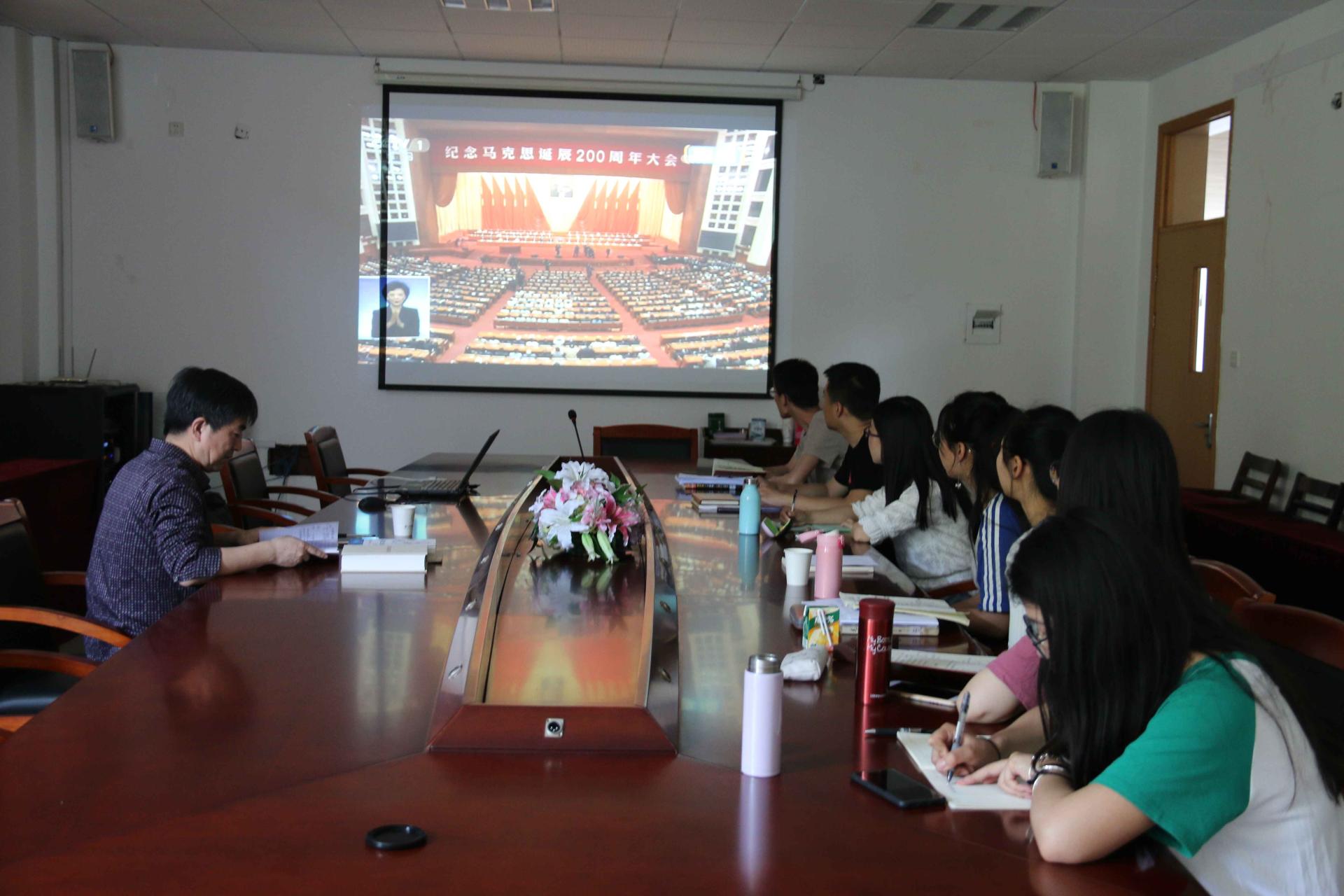 2018年5月4日上午十点,中共中央纪念马克思诞辰200周年大会在人民大会堂隆重举行。在此时段内,正在开设“马克思主义中国化历史进程与基本经验研究”课程的太阳集团tyc46332017级马克思主义中国化研究专业研究生,在任课华正学老师的带领下,在公司会议室即时观看大会直播实况,并围绕习近平总书记在大会上的重要讲话展开了热烈讨论。
