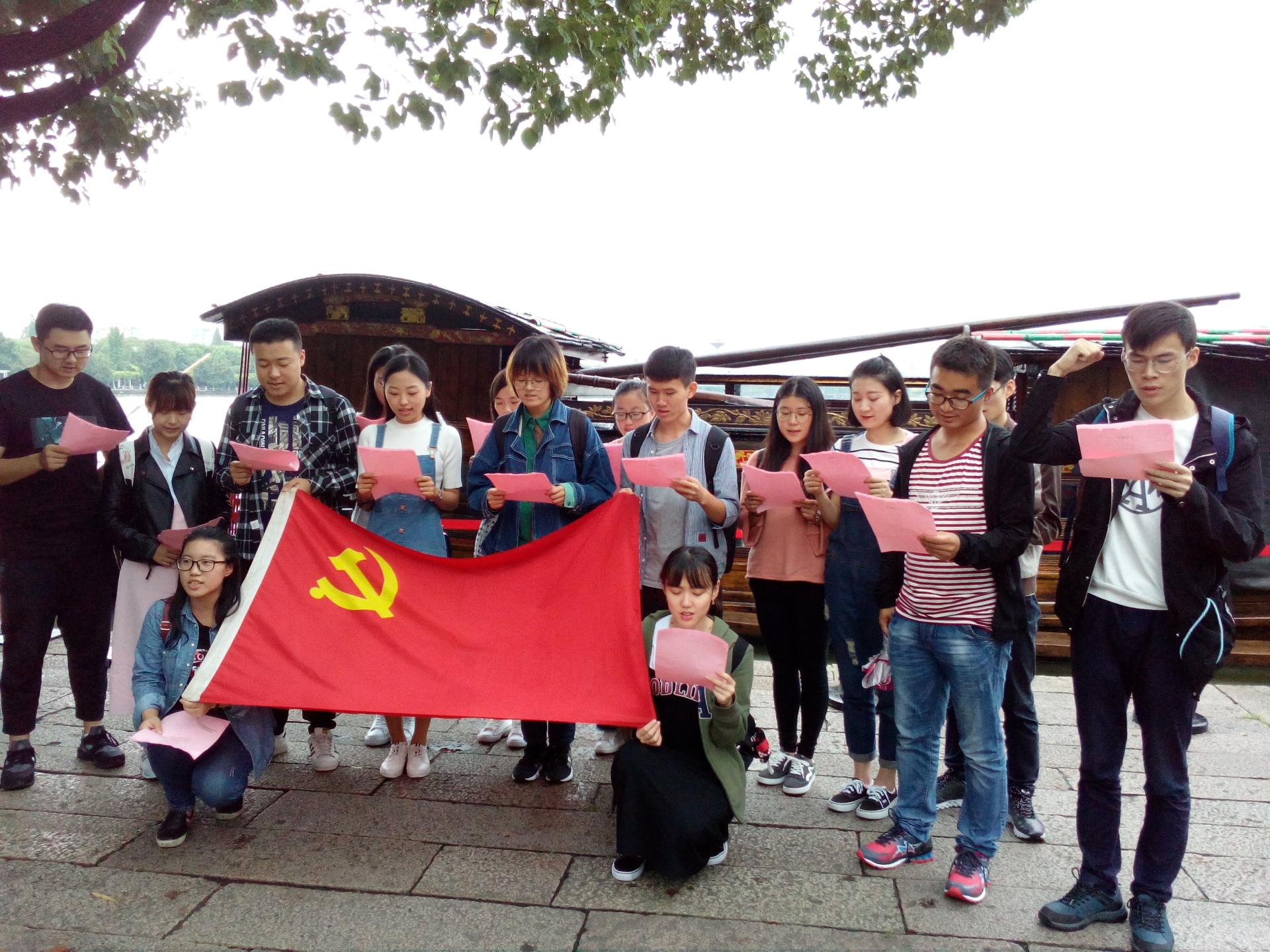 2017年9月22日,太阳集团tyc463317级研究生新生于嘉兴南湖红船旁进行了入学宣誓。为了引导研究生新生自觉树立专业学习信仰,做一名肯学习、爱专业的研究生,每年新生入学后,太阳集团tyc4633都会组织所有研一新生列阵嘉兴南湖,为新生上一堂生动的思想教育课——入学宣誓。