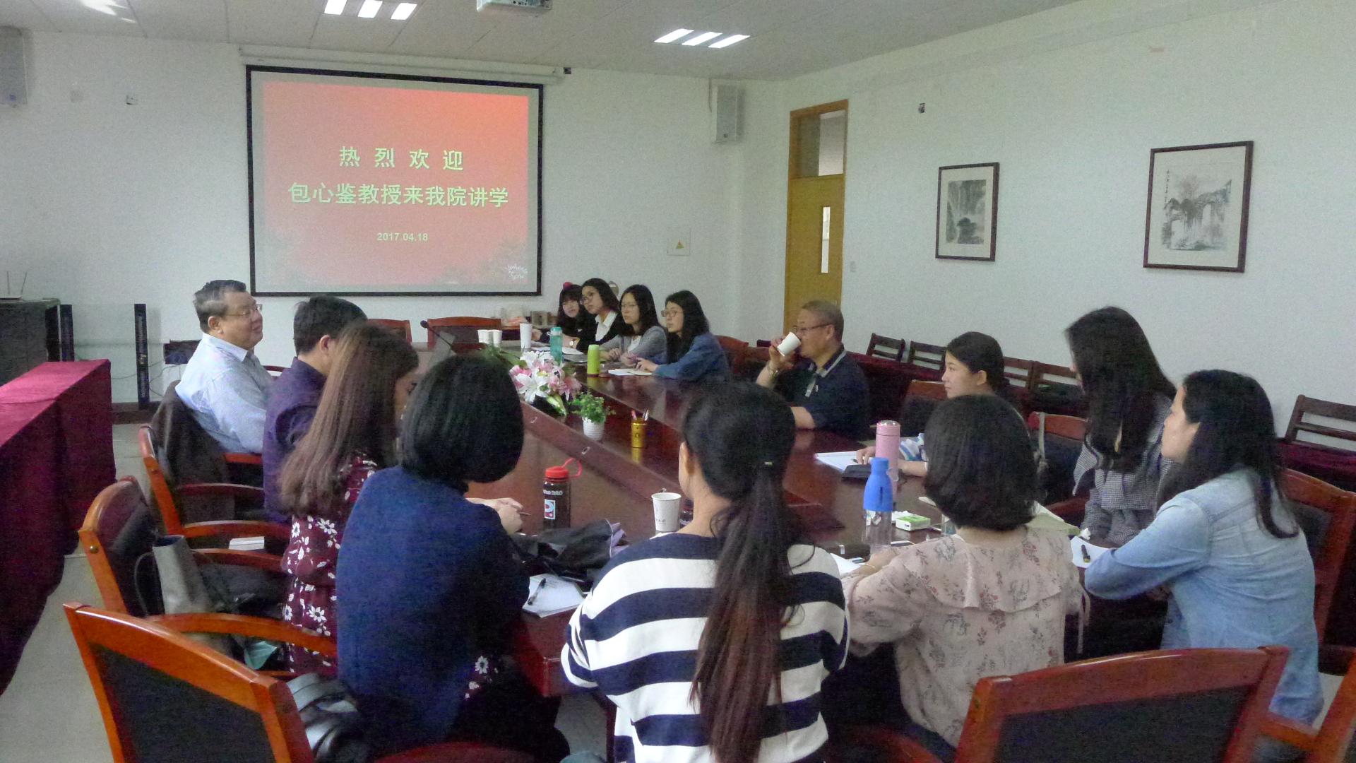 2017年4月18日,政治学专业博士生导师、中国政治学会副会长包心鉴教授来公司讲学。太阳集团tyc4633华正学经理、孟志中老师和全体马克思主义中国化专业硕士研究生参加了本场学术讲座。
