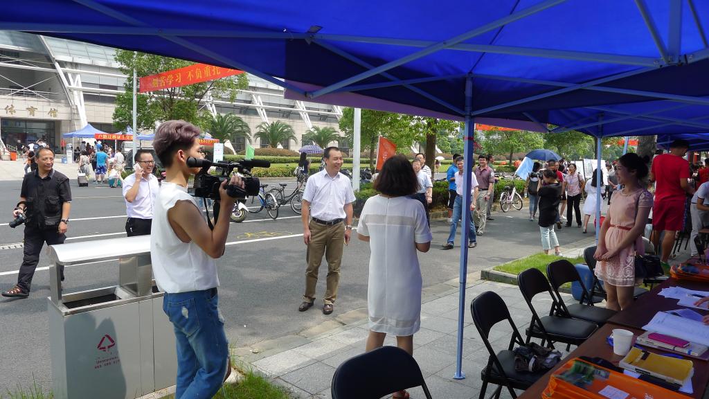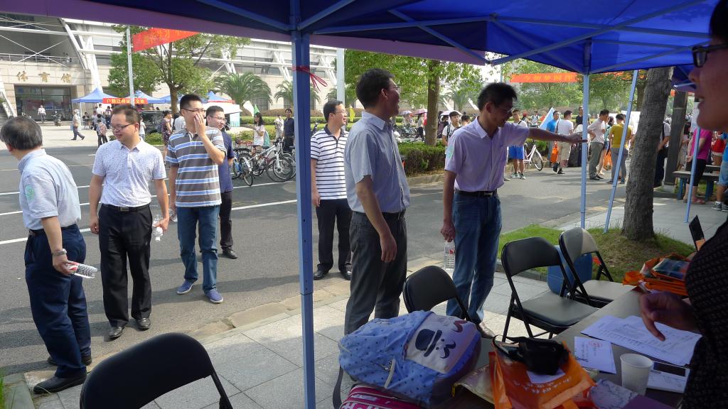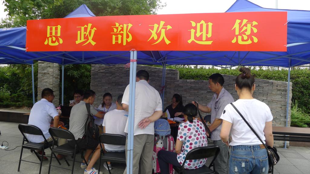 7:30左右,14级志愿者就在辅导员黄丽萍老师的带领下做好了迎新准备工作,开始接待到校新生。工作中,校领导也来到研究生迎新现场,看望参加迎新工作的老师和志愿者,并对其辛勤工作表示感谢。随后,思政部主任华正学老师详细询问了新生报到情况,并与前来报到的新生及其家长亲切交谈,询问员工本科就读院校、入学专业等等。