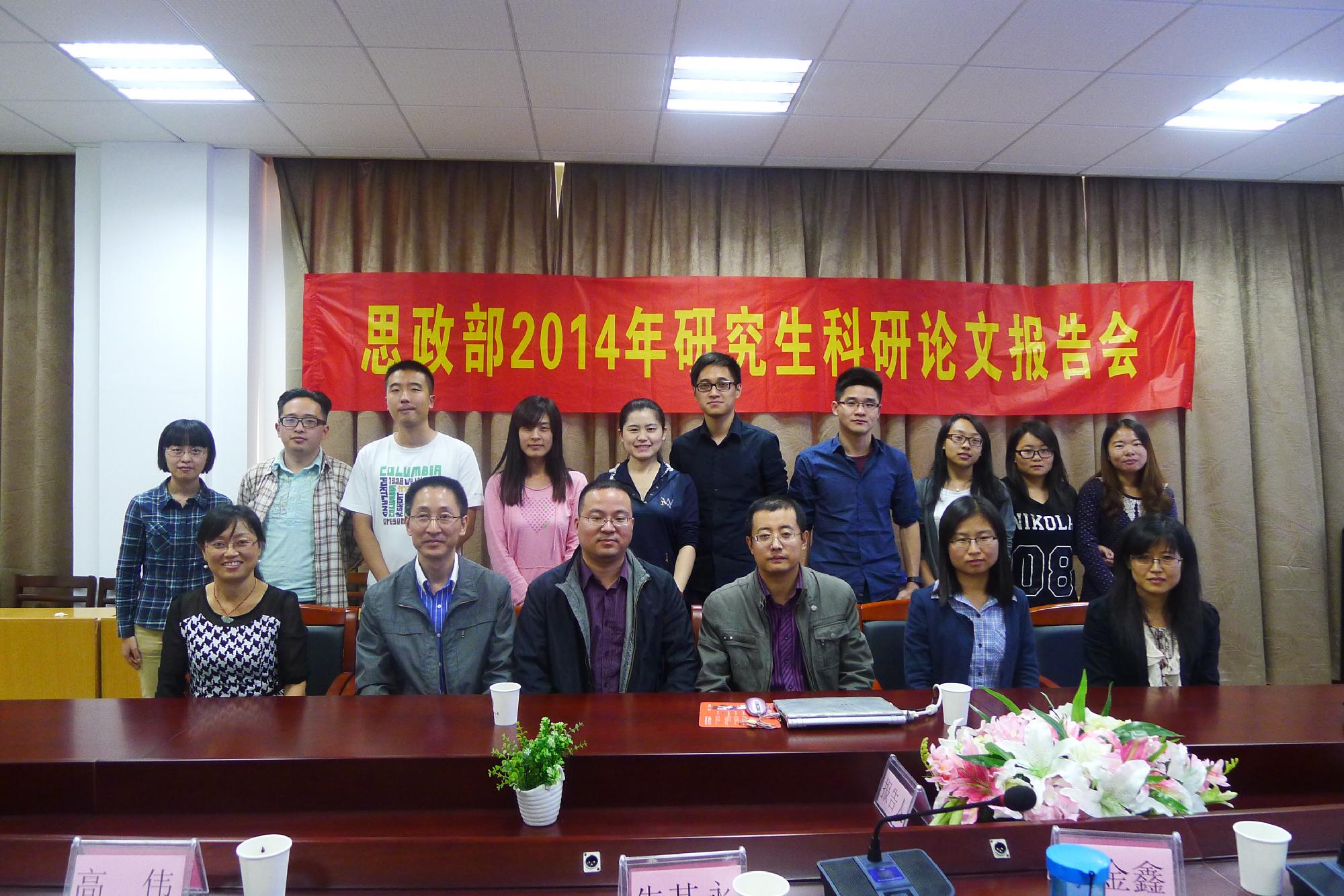 经过近三个月的认真筹备,10月24日下午,“思政部2014年研究生科研论文报告会”在3-211隆重举行。思政部领导、评委老师以及思政部全体研究生参加了此次论文报告会。