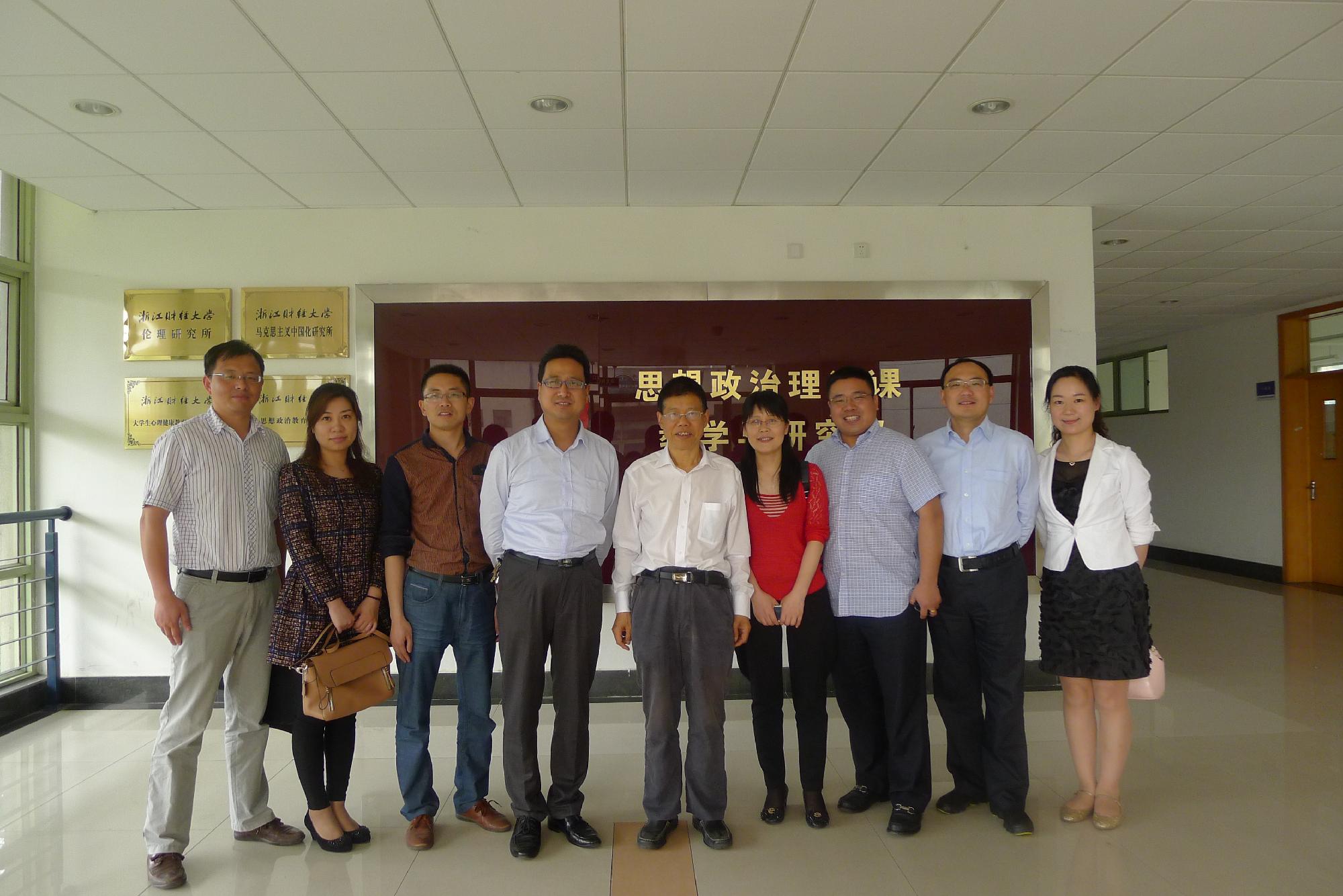 5月16日下午,河海大学太阳集团tyc4633思想政治教育专业博士生导师孙其昂教授、博士生导师戴锐教授以及教学秘书赵春霞老师同2013级博士研究生一行十多人来部交流。我部华正学主任及部分师生同客人进行了亲切的交流。