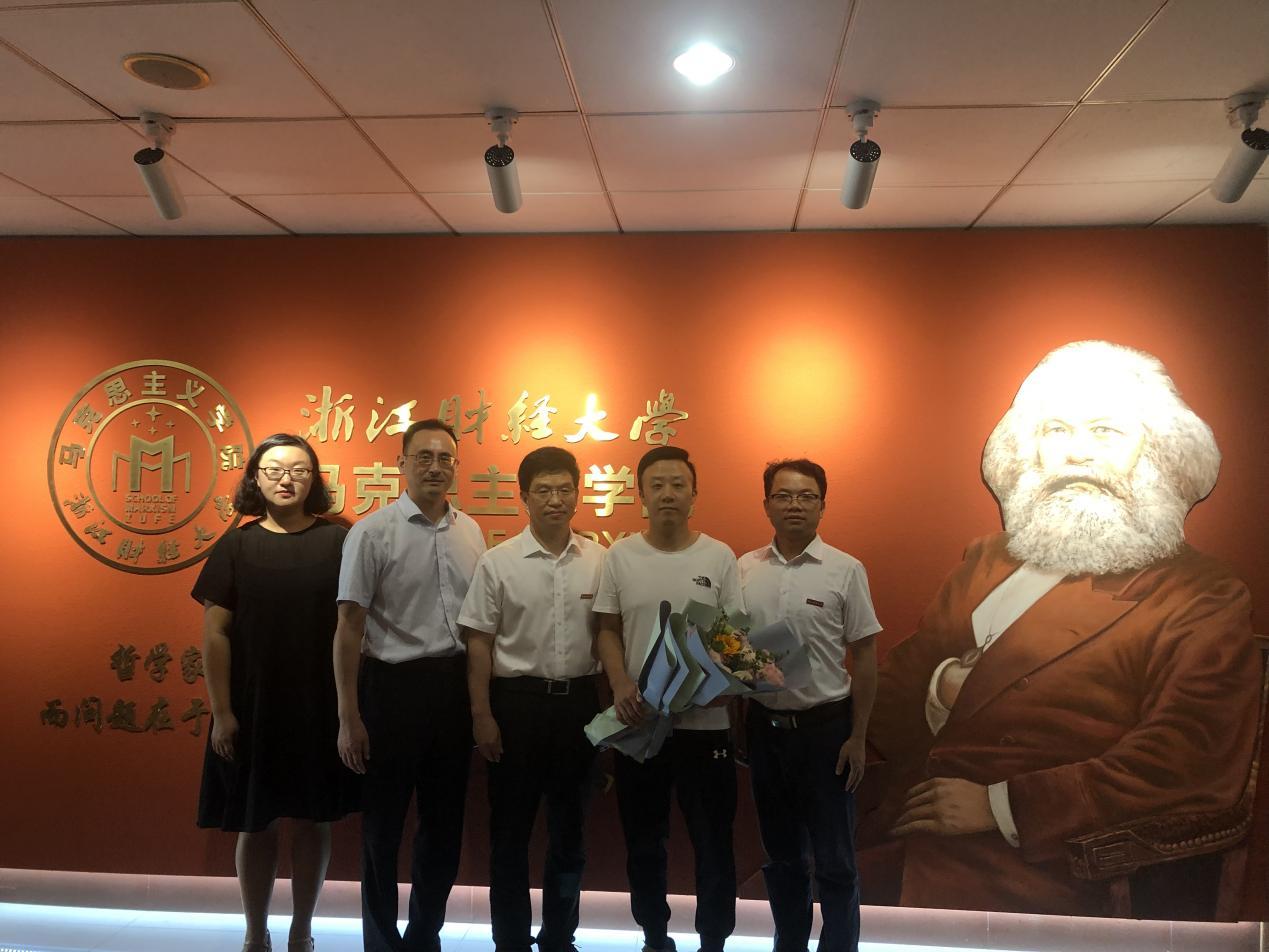 董副董事长与郑子律老师亲切交谈,详细了解郑老师的教学、科研、住房和生活等情况,对去年才入职财大马院的郑老师所取得的突出教学成绩给予了高度肯定。他鼓励郑老师继续保持良好的工作状态,教学和科研齐头并进,趁年轻多勤奋钻研,勇敢迈过一道道坎,争取事业更上一层楼。