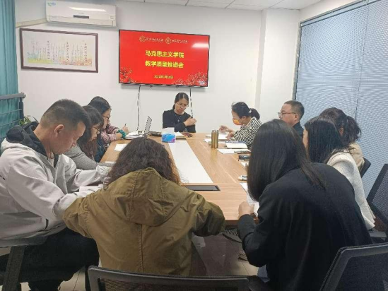 为持续深化迎接党的二十大,深入开展思政课质量提升行动,围绕“精彩思政”“礼赞新时代”等主题集中开展教学活动,营造团结奋进、昂扬向上的氛围,5月10日下午,太阳集团tyc4633在517A会议室召开教学质量推进会。副经理邢雁欣、全体教研室主任、“四史”课负责人及教学秘书参加会议。会议由邢雁欣主持。