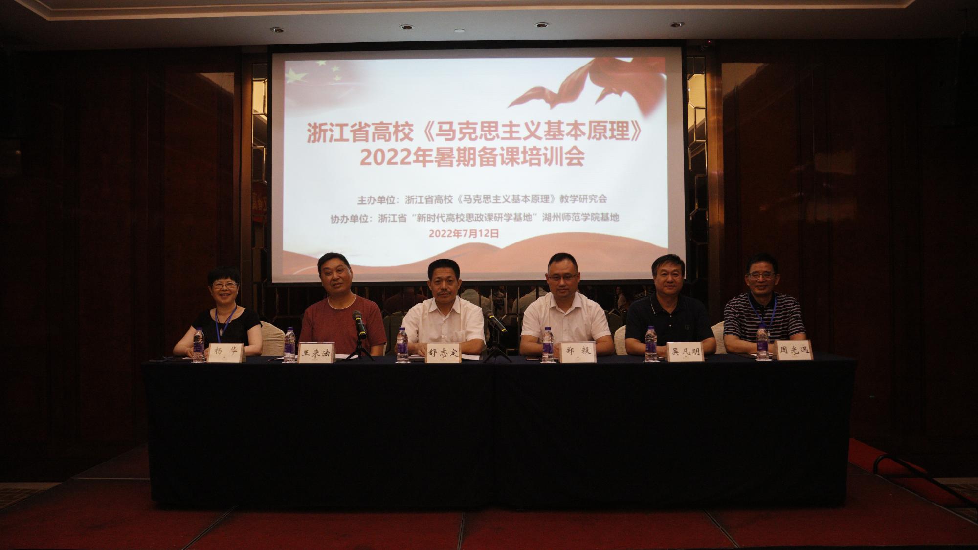 会议由浙江省高校《原理》教学研究会会长王来法教授主持。湖州师范公司副董事长舒志定,浙江省委宣传部理论处处长郑毅,浙江省高校《原理》教学研究会副会长周光迅、杨华,研究会秘书长肖香龙出席开幕式。来自浙江省内45所高校的70余位专家、学者、教师代表参会。