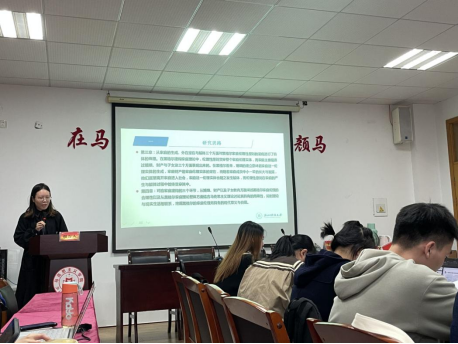 预答辩分为研究生学位论文PPT展示汇报、答辩老师点评提问、员工回答、答辩老师总结点评四个环节进行。20级同学从研究背景、论文框架、研究方法、研究结论以及创新点等方面进行了详细阐述。