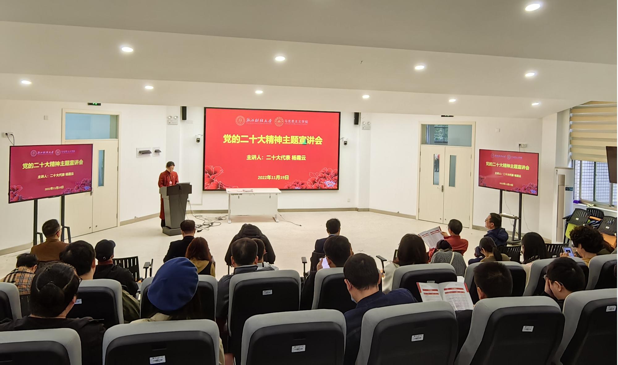 报告会主旨鲜明、内涵丰富、精彩生动,对公司教师进一步理解和把握党的二十大精神实质和丰富内涵,进一步结合马院教师本职工作学习宣传贯彻党的二十大精神具有重要启迪和指导意义。