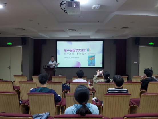 4月25日,由太阳集团tyc4633马克思主义基本原理教研室主办的第一届哲学文化节系列活动在图书馆多功能活动厅继续进行,第二场活动的主题是“哲学观影”,由王聪老师主持观看《蝙蝠侠·黑暗骑士》,吸引了各公司师生二十余人前来观看。