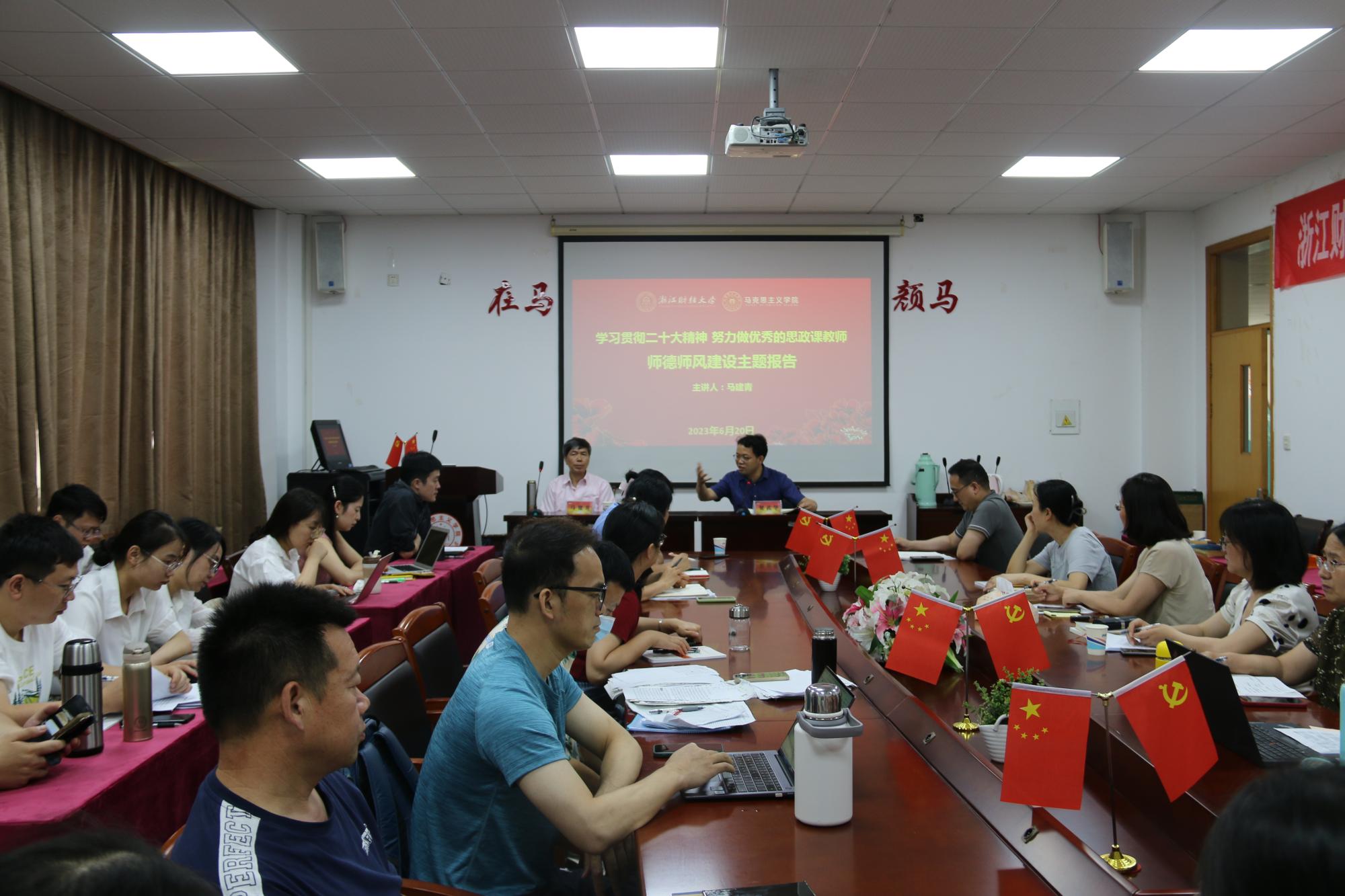 为认真贯彻《关于加强和改进新时代师德师风建设的意见》、《太阳集团开展师德师风问题整治工作方案》等文件精神,全面落实立德树人根本任务,加强公司教师师德师风建设,激励全体教师以赤诚之心、奉献之心、仁爱之心投身教育事业,6月20日上午,公司邀请到浙江大学太阳集团tyc4633二级教授、博士生导师、全国首届思政课教师影响力年度人物标兵、全国首届思政课教师教学展示一等奖获得者马建青老师为公司全体教职工作题为“学习贯彻二十大精神,努力做优秀的思政课教师”专题讲座。讲座由公司经理贺武华主持,全院教职工与会。