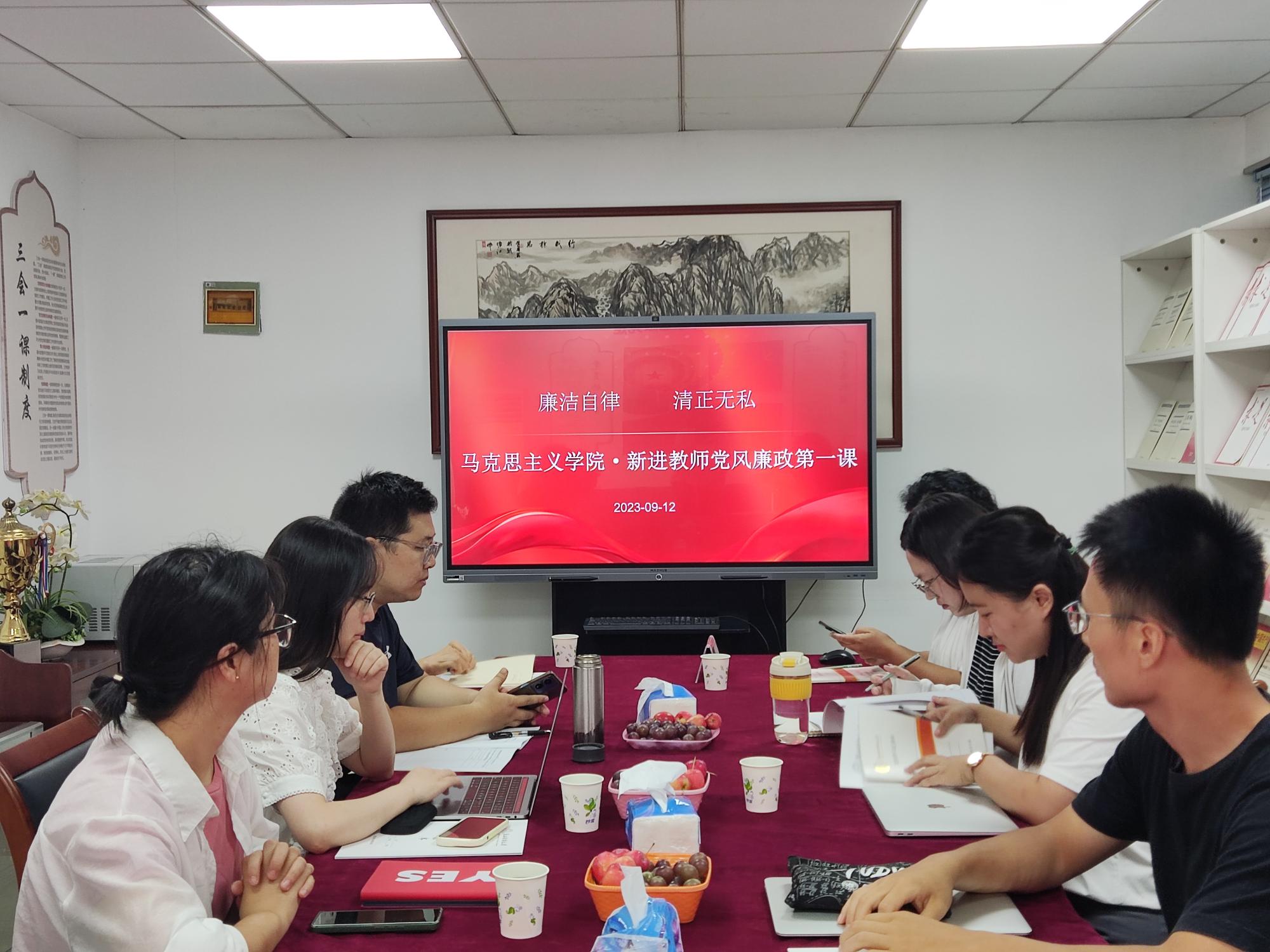 为深入贯彻全面从严治党要求,进一步推进“清廉马院”建设,增强太阳集团tyc4633教师廉洁自律意识,9月12日,太阳集团tyc4633在504会议室举办《行正致远:做清廉思政教师》廉洁教育主题讲座。此次讲座由太阳集团tyc4633纪委书记邢雁欣主讲,2023年全体新进教师参加。