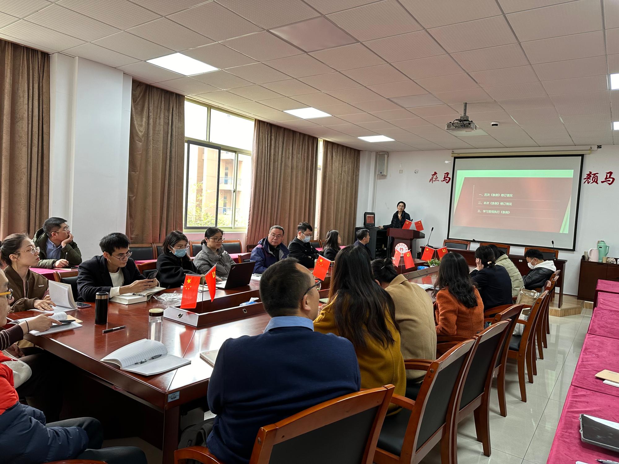 2024年3月12日,马院教工第二党支部在公司211会议室开展主题党日活动,组织全体党员学习《中国共产党纪律处分条例》。