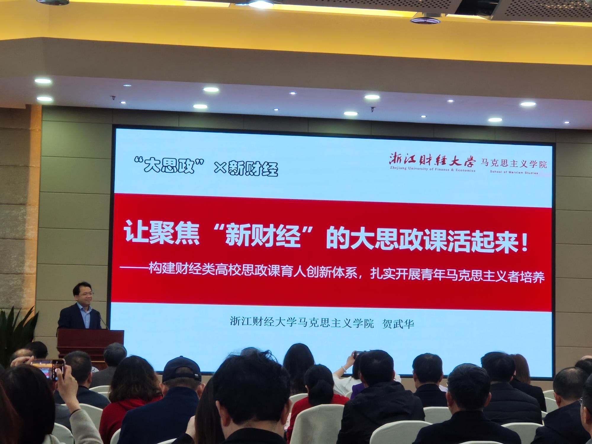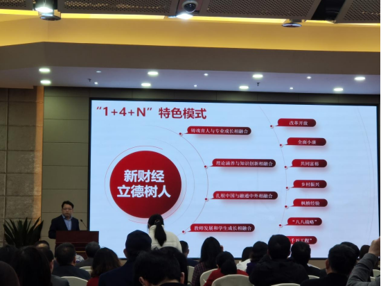 在随后的经验交流环节,公司经理贺武华围绕“面向区域与行业特色的高校思政课创新”作主旨发言,发言题目“让聚焦新财经的大思政课活起来!”发言介绍了五年来公司围绕“新财经×大思政”形成的“1+4+N”特色做法和总体思路,重点介绍了公司“1+1+N”新财经战略大思政课程体系、“三结合四统一”思政课创新教学模式、面向实践以赛促教的特色做法等。发言受到与会者广泛关注。