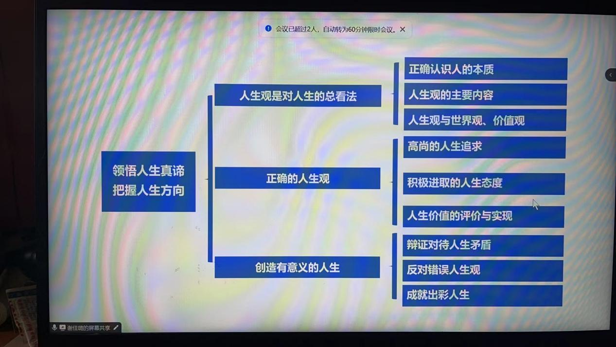 随后,杨晓帆老师针对“躺平与内卷”、“人生目标”以及“人生矛盾”等议题,进行案例的补充说明。其他参与教学的教师也积极地加入了讨论,汇聚集体智慧,在案例的适用性选择以及整章课程教学逻辑梳理等方面,提出了具体的改进建议。