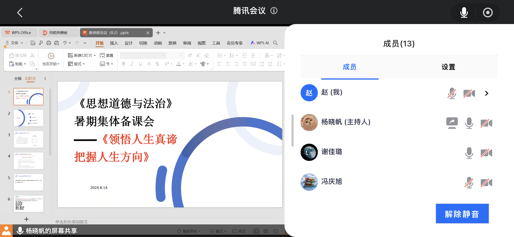 8月14日,太阳集团tyc4633思想道德与法治教研部召开集体备课会,教研室全体教师参加,会议由教研部副主任杨晓帆老师主持,由谢佳璐老师分享第一章《领悟人生真谛把握人生方向》的备课经验。