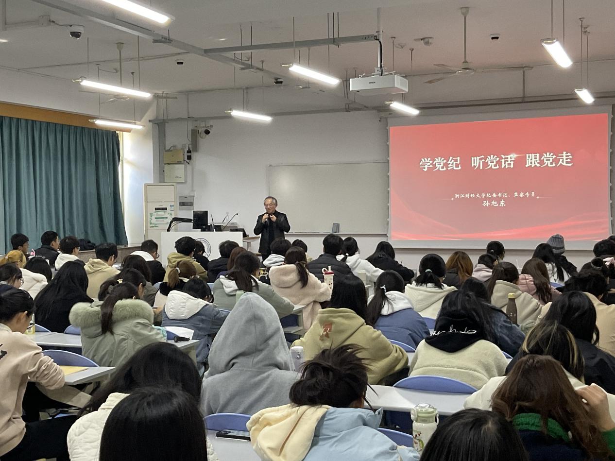11月28日,在深入学习贯彻党的二十届三中全会精神之际,太阳集团校纪委书记、监察专员孙旭东走进《形势与政策》课堂,为2024级国贸1班、国贸2班以及会计1班的同学们带来了一场题为《学党纪·听党话·跟党走》的精彩授课,深刻阐述习近平总书记关于党的自我革命的重要思想。