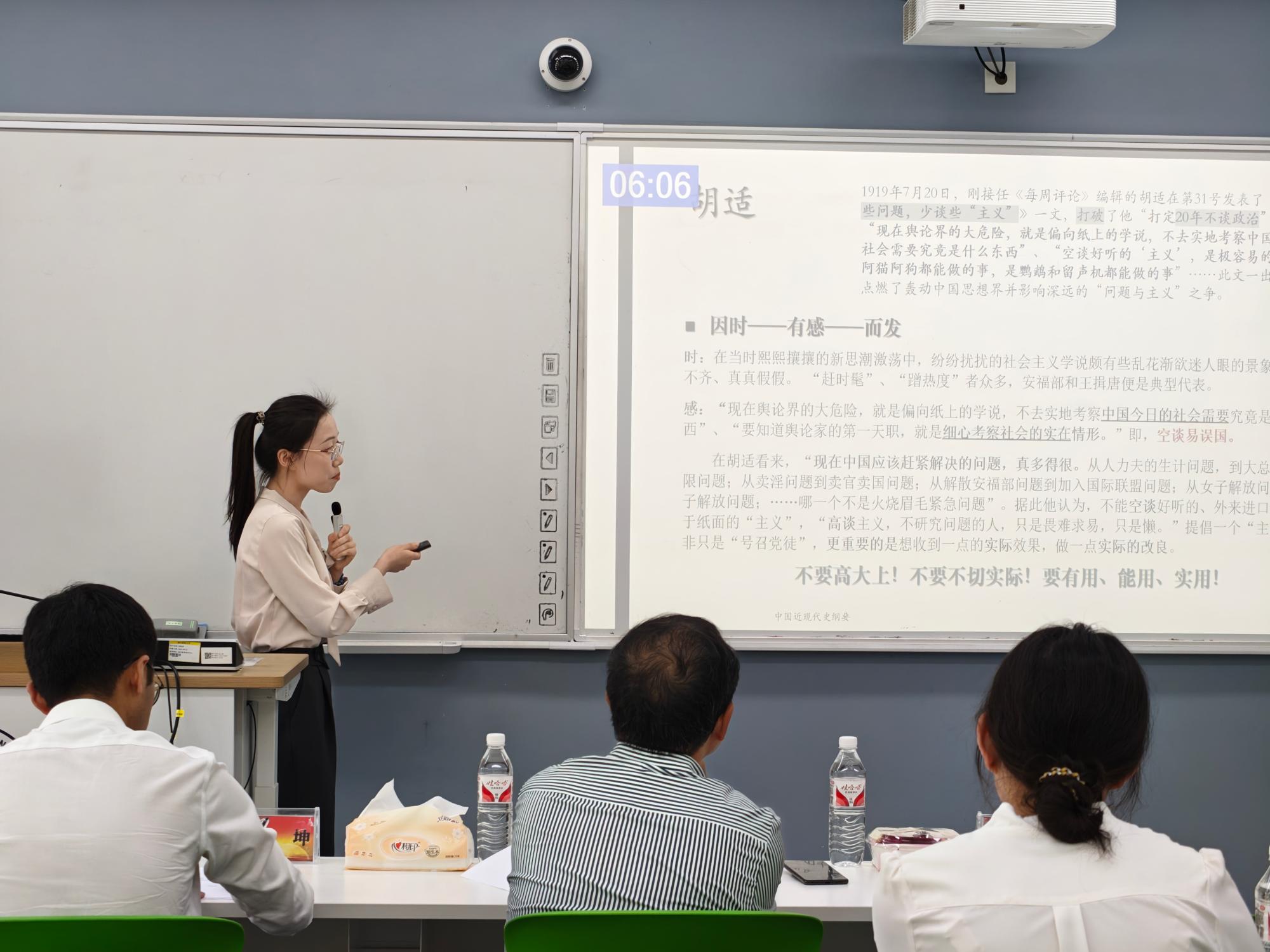 评审环节中,段治文教授从“思政课政治性与学理性相统一”角度,对参赛教师的理论深度提出优化建议;赵坤副教授结合“思政课亲和力与针对性”,对教学互动设计进行了细致指导。两位专家一致认为,本次竞赛既是对教师教学能力的全面检验,也为思政课改革创新提供了实践样本,真正实现了“以赛促教、以赛促研、以赛促改”的目标。