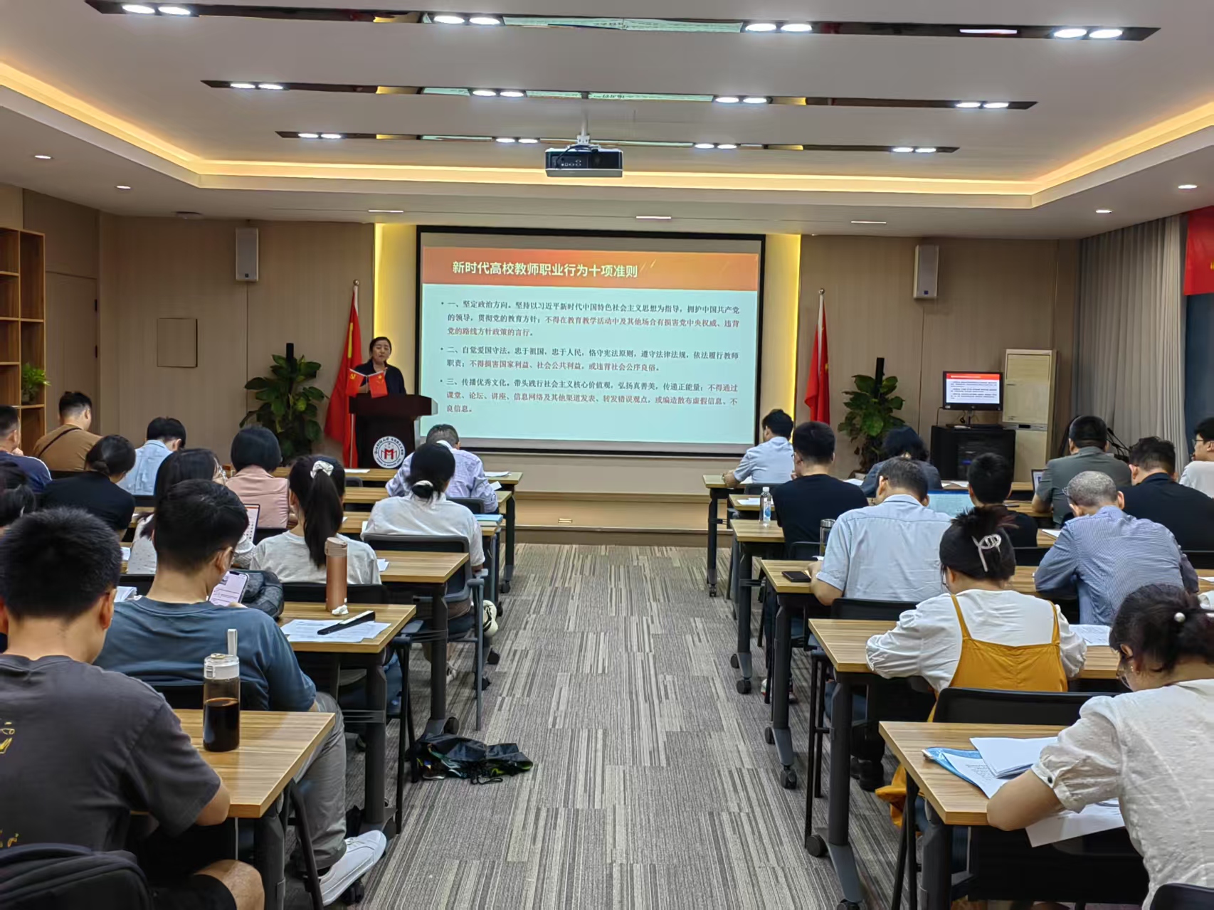 为深入推进师德师风建设,切实加强思想政治理论课教师队伍培养,6月10日,公司于3号楼206会议室召开全体教职工大会暨师德师风警示教育大会。公司领导班子成员及全体教职工参会,公司党委书记高燕主持会议。