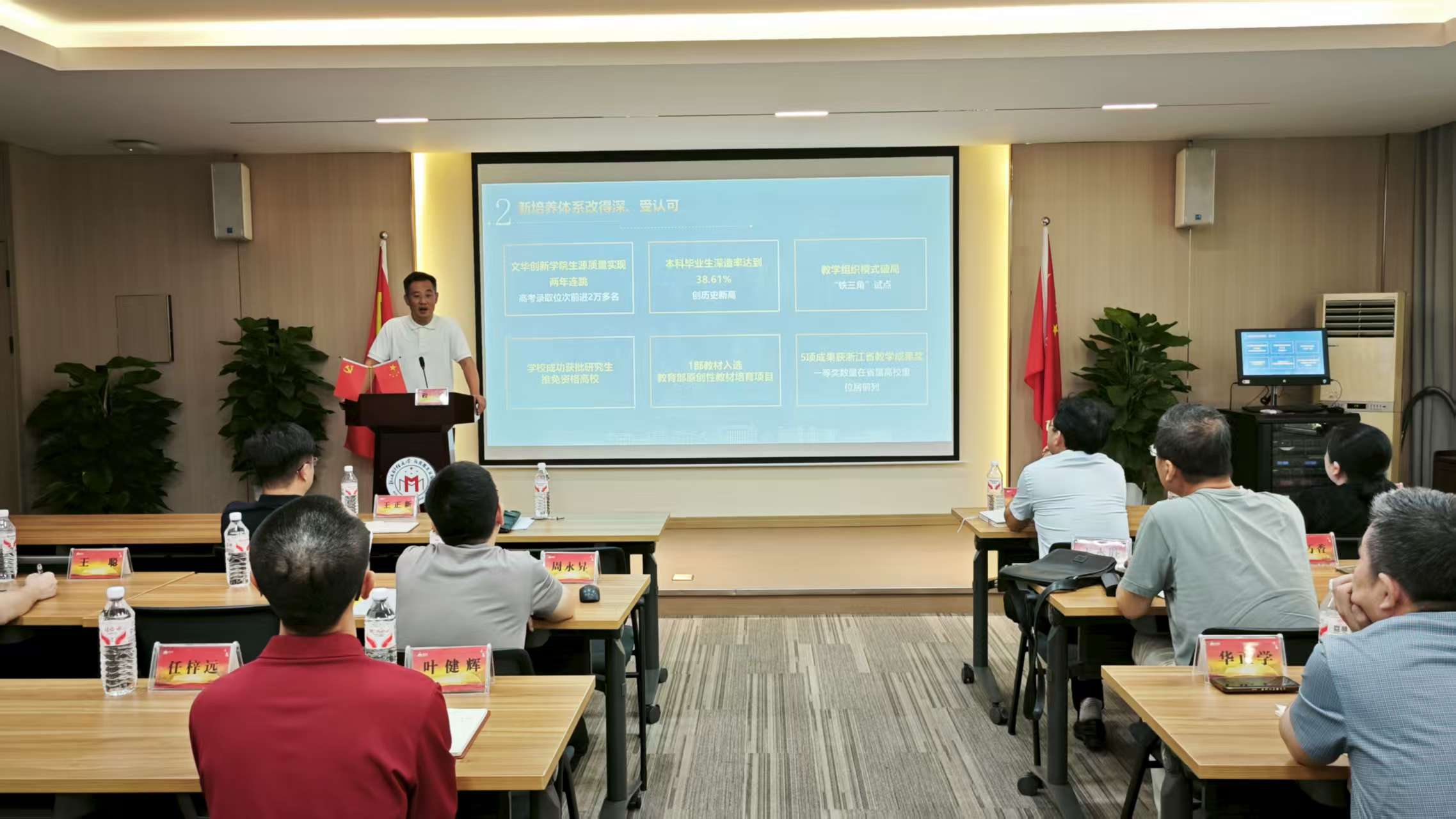 为深入贯彻落实《教育强国建设规划纲要(2024-2035年)》及教育部《普通高校思政课教师队伍建设规划(2025-2027年)》,着力提升思政课教师理论修养和教学创新能力,打造高素质专业化思政课教师队伍,提升思想政治理论课教学质量,太阳集团tyc4633于9月18-19日成功举办思政课教师专题培训暨期初集体备课会。公司党委副书记程爽出席开班仪式并讲话,全体思政课教师参加培训,会议由经理贺武华主持。