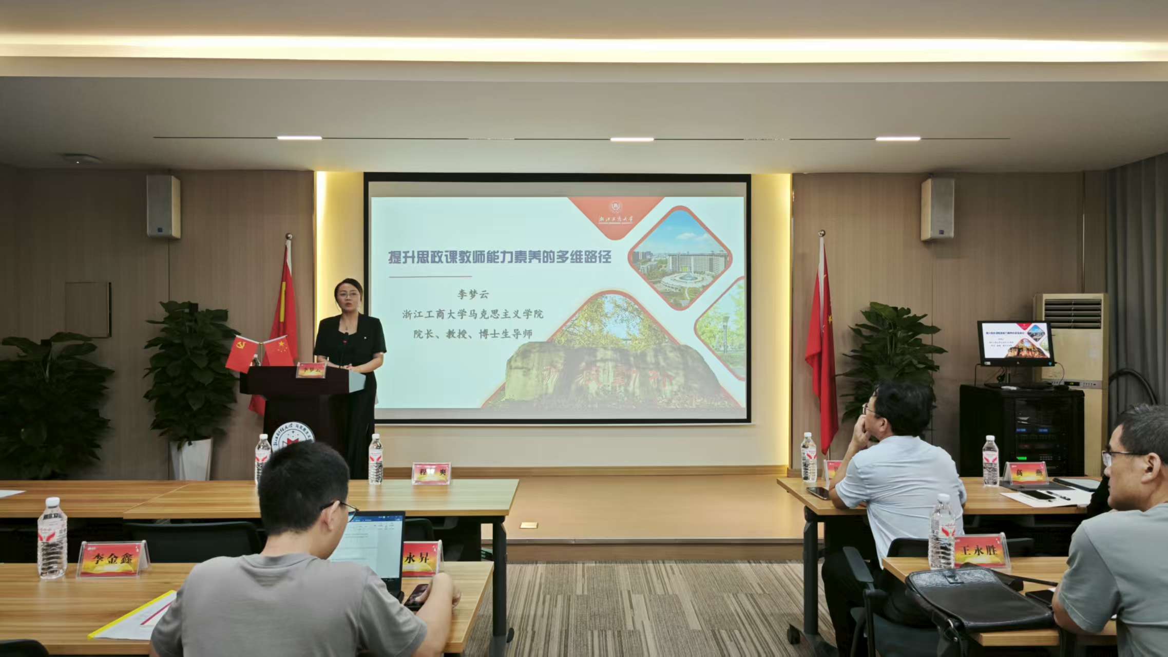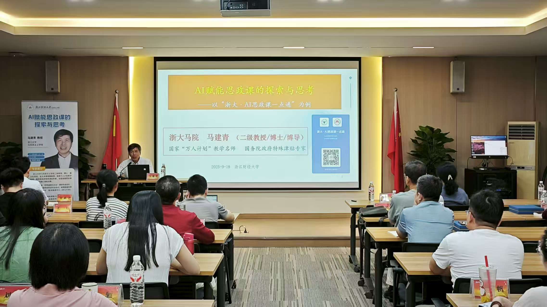 在专家讲座环节,浙江大学太阳集团tyc4633教授马建青聚焦人工智能在高校思政课教学中的应用与探索,介绍了浙江大学自主研发的AI助教系统,探讨了如何通过AI技术提升思政课教学的针对性、实效性,为推动思政课教学模式的数字化转型提供了有益镜鉴。浙江工商大学太阳集团tyc4633教授李梦云从课件打磨、项目申报、论文投递、报纸发表等维度阐述了提升思政课教师能力素养的路径,提炼出“做研究、抓重点、讲故事”九字诀,为教学能力提升提供实操指南。