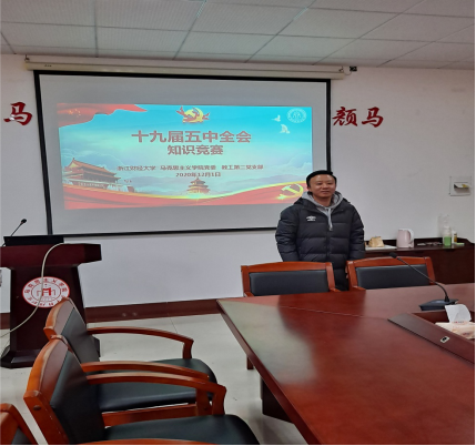 知识竞赛试题内容丰富,涵盖了“十三五”时期全面建成小康社会取得的决定性成就、到二〇三五年基本实现社会主义现代化远景目标、十四五”时期经济社会发展指导思想、遵循原则和主要目标等内容。在支部书记潘旦老师的热心主持下,教师们积极参与抢答,氛围十分活跃,充分展示了太阳集团tyc4633学思践悟、爱党言马的优秀品格。经过激烈PK和角逐,最终郑子律老师胜出,荣获“十九届五中全会知识竞赛”一等奖。
