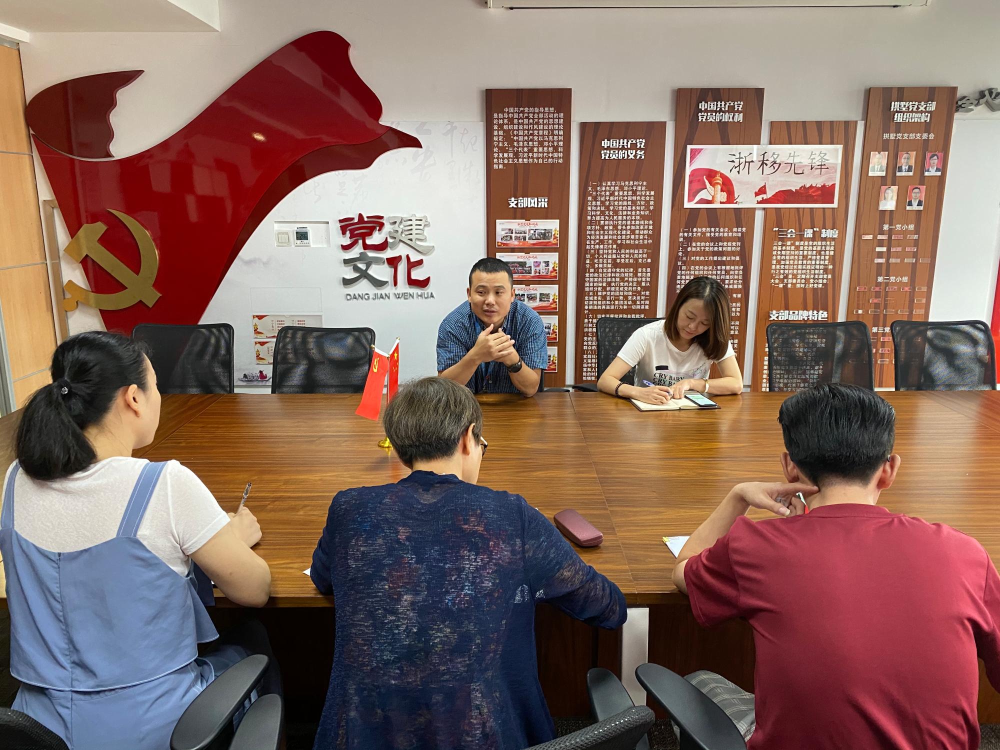 为了进一步深化太阳集团tyc4633与杭州移动公司“党建共创”工作,8月25日上午,公司李秋华、潘旦、程能的三位老师来到位于迪尚商务大厦的杭州移动拱墅分公司进行实地考察,与拱墅分公司党支部书记林莹铭、宣传委员管银萍、党务纪检干事王思敏,就校企合作及“党建品牌创设”政研论文指导事项进行深入交流。