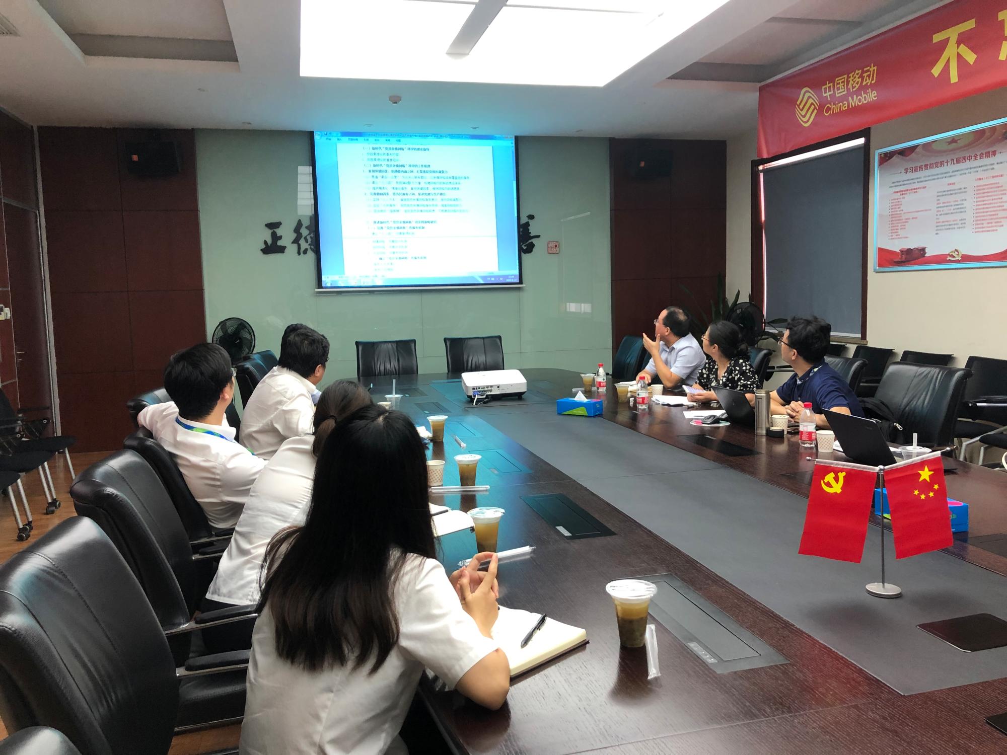 为深入贯彻落实习近平总书记国有企业党建工作思想,进一步推动太阳集团tyc4633与杭州移动公司“党建共创”工作深入开展,促进优势互补、资源共享、合作共赢。8月20日下午,在贺武华经理带领下,公司赵春珍、高伟、金梦佳老师前往中国移动杭州萧山分公司实地考察,与萧山分公司党总支和支部党员代表就“党员亲情网格”政研论文展开深入细致的交流探讨。