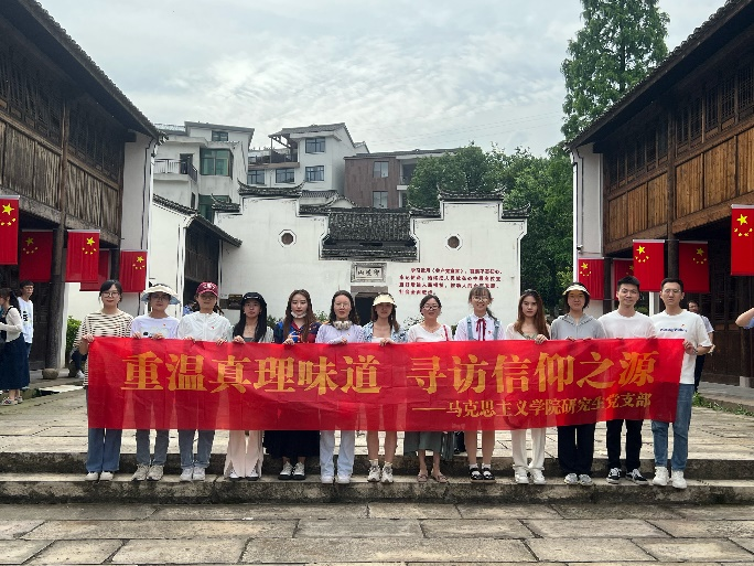 位于浙江义乌的分水塘村,是陈望道先生的故乡,也是第一本中文译本《共产党宣言》的诞生地。支部组织全体研究生党员前往陈望道故居参观学习,共同重温真理味道,寻访信仰之源。全体党员边走边听边看,追寻陈望道先生的革命足迹,品味“真理味道有点甜”的革命信仰。