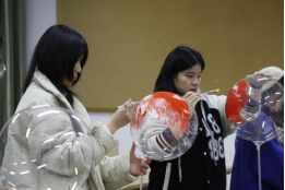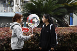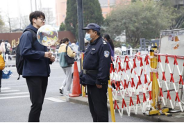 3月21日下午15点,各位同学拿起手中的气球,向员工以及保安叔叔展示绘画成果,生动形象地讲述了党的百年历史和对祖国的热爱。