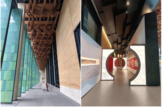 走进杭州国家版本馆,如同置身于中国古典山水画中。由龙泉青瓷拼成的一扇扇高十余米的屏扇通过机械控制,每扇门既可以呈折扇式,也可以排成一面平铺的屏风,如同宋代画屏。党员们在支部书记黄丽萍的带领下依次参观了“文献之邦——江南版本文化概览”、“版印江南——中国版画版刻版本大展”、“数字馆”等展区,既有一种历史深度的穿越感,也有一种地理广度的跳跃感。大家一路前行一路感叹,版本馆真是“赓续中华文脉、坚定文化自信、展示大国形象、推动文明对话”的精品传世工程,值得“打卡”。