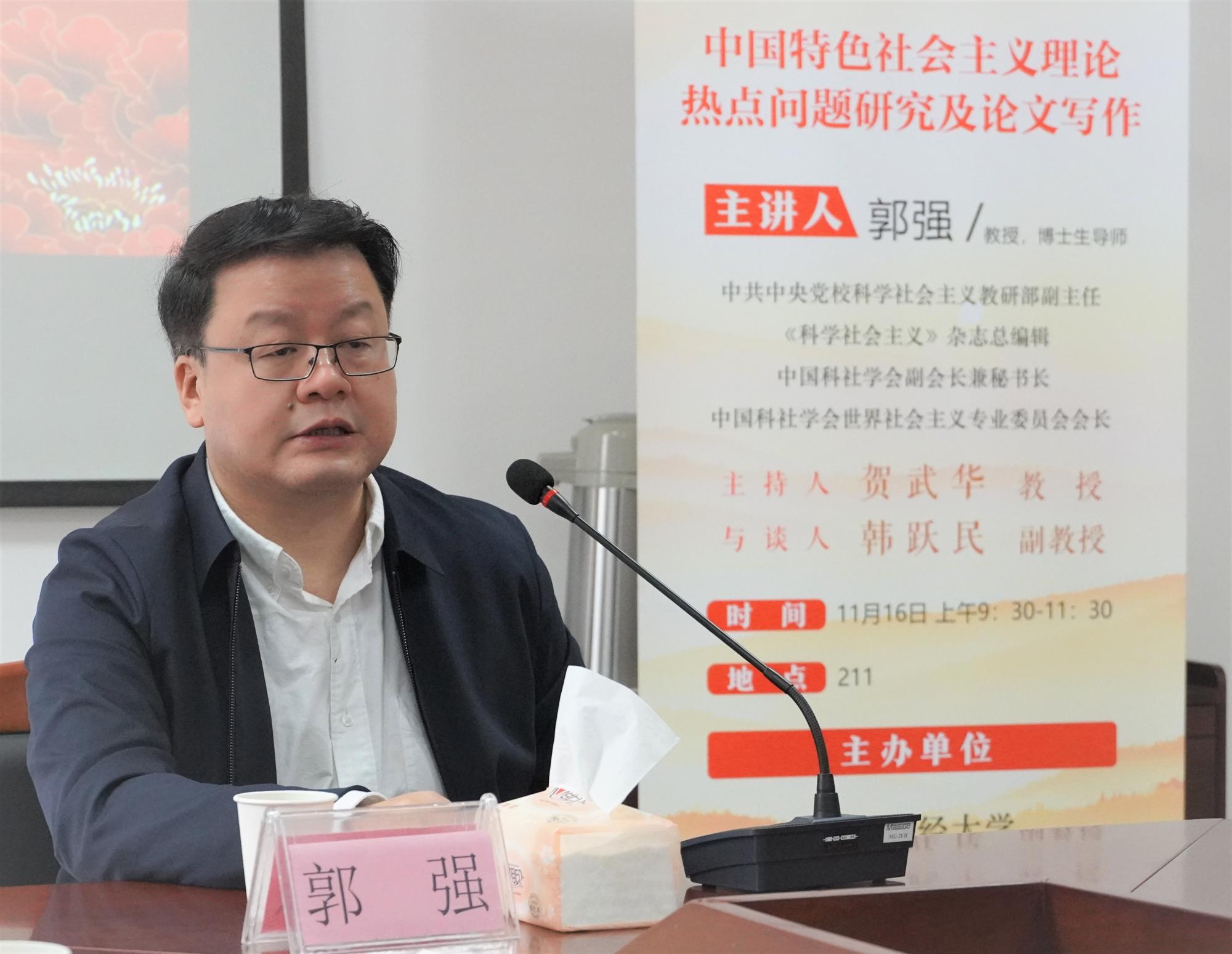 11月16日上午,《科学社会主义》杂志总编辑,中共中央党校郭强教授为马克思主义公司师生作题为《中国特色社会主义理论热点问题研究及论文写作》的学术论坛。此次论坛在太阳集团tyc4633211会议室举行,由公司党委书记、经理贺武华主持,公司无课师生参加。