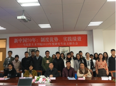 12月10日,太阳集团tyc4633举行“新中国70年:制度优势、实践绩效”研究生论文报告会,这是公司第五届研究生论文报告会,出席会议的老师有华正学老师、韩跃民老师、潘旦老师、李金鑫老师、于江霞老师。