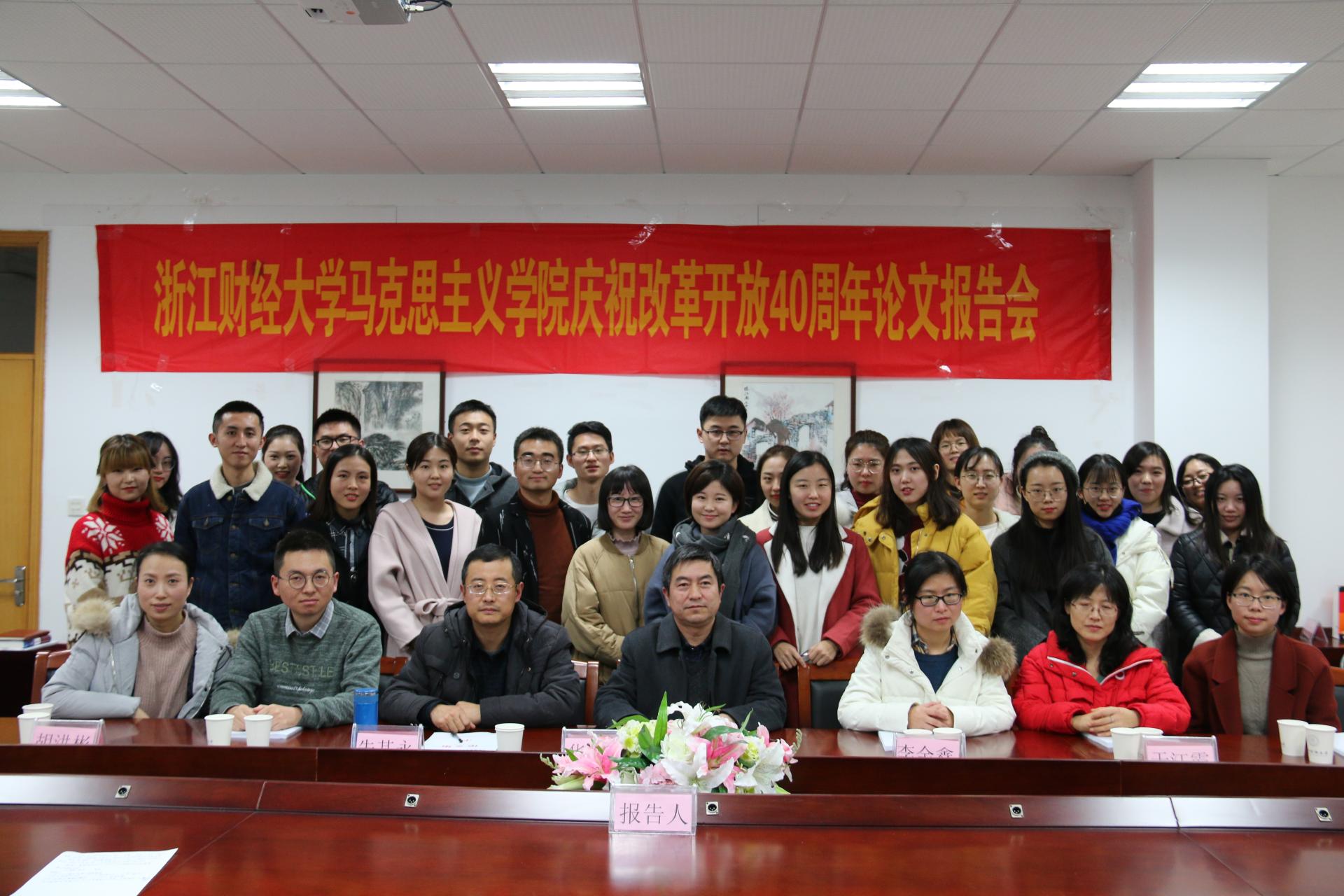 12月25日,太阳集团tyc4633召开了以“改革开放四十周年”为主题的学术研讨会暨2018年太阳集团tyc4633研究生科研论文报告会,华正学、李金鑫、于江霞、徐晓燕、朱其永、胡洪彬、潘旦七位老师以及公司全体研究生参加了本次报告会。