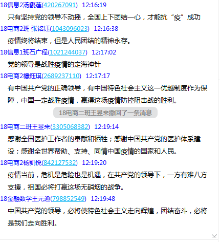 一个小时的公开课上,李书记例举了大量案例、数据,内容详实、深入浅出,还分别就每个话题与同学们互动交流、循循善诱,为公司老员工上了一堂厚植爱国主义情怀的疫情思政课。李书记的公开课在师生间引起热议,在教师的组织下员工对比了中外政治制度的差异,对我国社会主义制度的优越性进行深入讨论;师生共同回顾100多年来中华民族谋求解放的艰辛历史,思考讨论了蕴藏在伟大人民间的中国精神和中国力量。