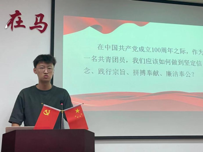 随后进行会议的第二项议程,团员代表王正阳同学发言。王正阳同学从历史的、人民性的、全球性的和文明论的这四个不同的视角阐述了习近平总书记“七一”重要讲话闪耀着马克思主义真理的光辉,具有里程碑式的意义。王正阳同学的精彩发言获得了大家的热烈掌声。