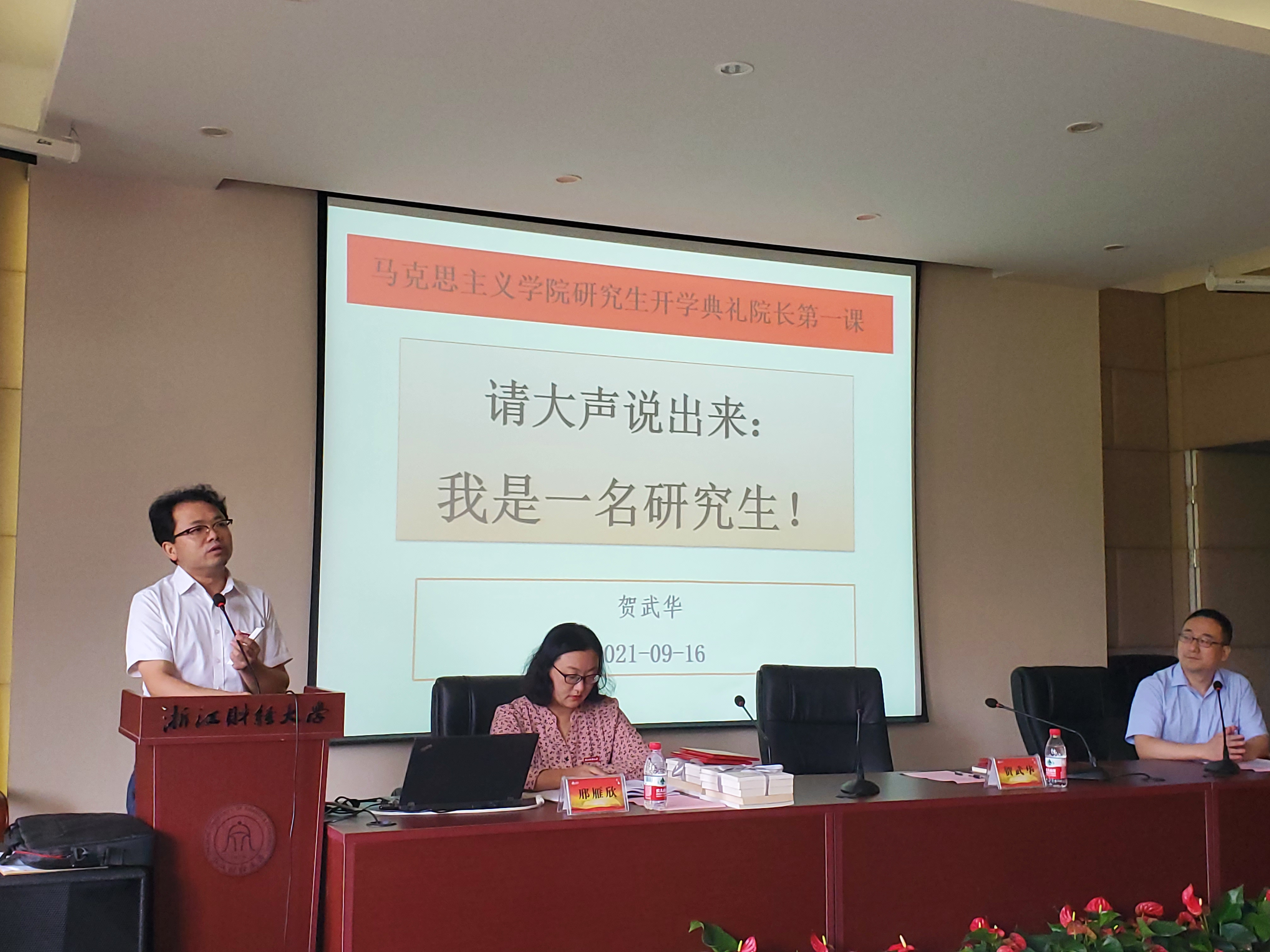 公司党委书记、经理贺武华给21级研究生上了新生第一课。他从理想信念、马院精神和党史教育等方面对新生进行了思想政治教育,并勉励员工们在研究生新阶段,要树立远大坚定的理想信念和家国情怀,脚踏实地,学以致用。他对新同学们提出了三点要求:一要端正学习的态度、学会学习的方法和提高学习的自主性;二要在研究生阶段合理分配时间,早日明确目标;三要主动探索、去学习。
