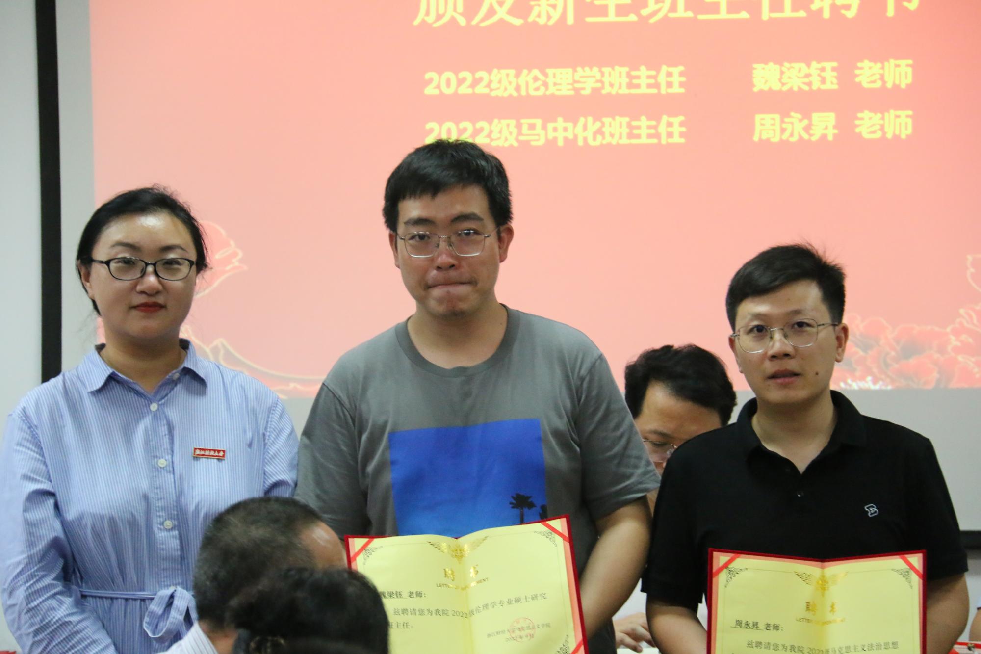公司历来十分重视班主任队伍建设,今年同样聘请了魏梁钰、周永昇老师作为伦理学和马中化专业的班主任,公司副经理邢雁欣为新生班主任颁发聘书。