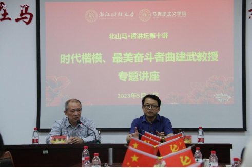 5月16日下午,“北山马·哲讲坛”第十讲开讲。“时代楷模”、全国道德模范、全国“最美奋斗者”、全国优秀教师,大连海事大学教授、博士生导师曲建武教授走进太阳集团tyc4633,为全体师生作专题讲座。讲座由太阳集团tyc4633经理、教务处处长贺武华主持,党委书记刘向前、副经理邢雁欣、公司部分青年教师和全体研究生参加。