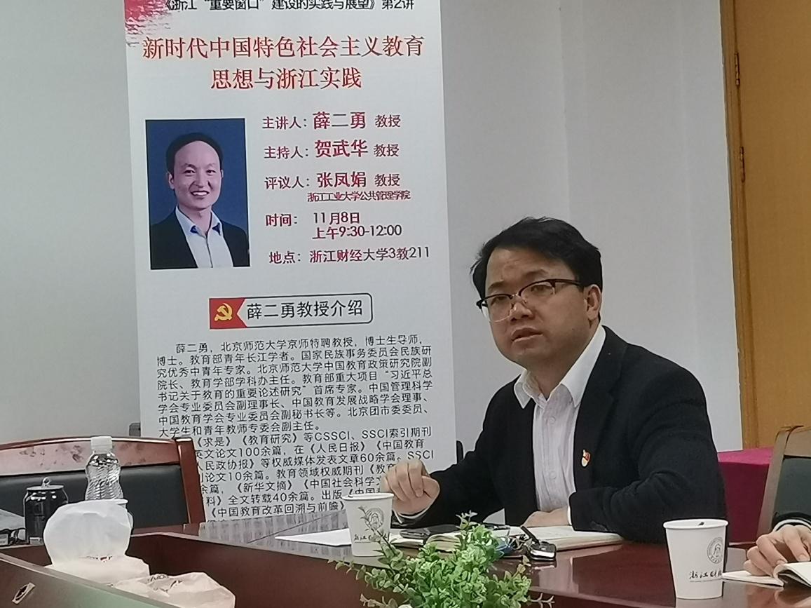 11月8日上午,太阳集团tyc4633在3号楼211会议室举行“新时代中国特色社会主义教育思想与浙江实践”学术交流报告与录制工作。这是公司承担省社科联之江青年社科学者学术交流论坛课题的第2讲。本讲主讲嘉宾为教育部长江学者青年学者、北京师范大学中国教育政策研究院副经理、京师特聘教授、博士生导师...