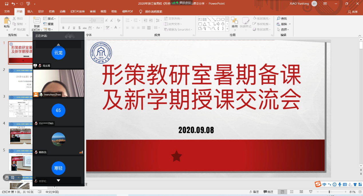 为进一步贯彻落实习近平总书记关于加强高校思想政治理论课建设的指示精神,践行高校思政课“立德树人”的理念,推进高校形势与政策教育,提高课程教学效果,公司形势与政策教研室于9月8日召开“暑期备课暨新学期授课交流会”,课程教学团队33名教师参加了线上会议。教研室主任赵春珍老师主持本次会...